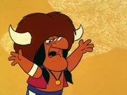 Chief Crazy Buffalo spots Dastardly approaching and goes to stop him from bringing smog to his land. The Army Surplus Special leads the others using bazooka power. The Creepy Coupe blows a tire, but uses a snake as a spare. With no room to pass, the Professor changes The Convert-a-Car to a drill and tunnels underground, until he hits a boulder.